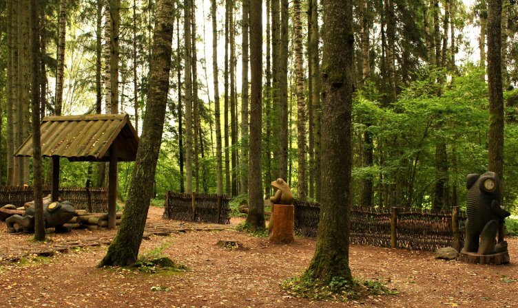 LVM dabas parka Tērvetē stāsts aizsācies jau 1958. gadā ar mežkopja M. Kļaviņa ainavu parka ideju, bet pirmā koka skulptūra dabas parkā Tērvetē tiek uzstādīta 60-to gadu beigās, un tas ir Sprīdītis. Skolēni izstaigā parku un izzina koka skulptūru veidošanas tradīcijas Tērvetē, t.sk. 1969. gadā A. Brigaderes triloģijas „Dievs, Daba, Darbs” iedvesmoto koka skulptūru ansamblis “Annele ar draudzenēm”, 1971. gadā uzstādīto koka skulptūru kompleksu Sprīdītis un Lutausis, 1972. gadā - Meža ķēniņš, autors koktēlnieks Kr. Kugra. Bez tam skolēni pastaigas laikā iepazīst arī ekspozīciju no pasaku luga “Maija un Paija, kā arī meklē un atrod Lolitas brīnumputnu. Stāsts arī par šī brīža koktēlniecības tradīciju turpinātāju koktēlnieku Ritvaru Kalniņu un viņa redzējumu.