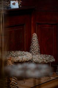“Darbs pie izstādes veidošanas sācies jau šī gada sākumā. Lai no dabas materiāliem radītu skaistus un ilglaicīgus dekorus, materiāli jāievāc īstajā laikā. Pirms skaistumlietu radīšanas, tie rūpīgi jāsagatavo un jāizžāvē. Deviņu mēnešu laikā mežos atrastas neticami košas un daudzveidīgas dabas krāsas sēkliņās, čiekuros, auglīšos un pogaļās. Mežs dāvā daudz dažādu materiālu, ļaujot ienest mājās meža mieru un skaistumu,”Darbu radīšanās process ir rūpīgs un meditatīvs. Nav divu vienādu darbu, katrā ievīti savi materiāli, sajūtas un labās domas”, savās sajūtās dalās izstādes veidotāji LVM Kalsnavas arborētuma un LVM Smiltenes kokaudzētavas darbinieki.