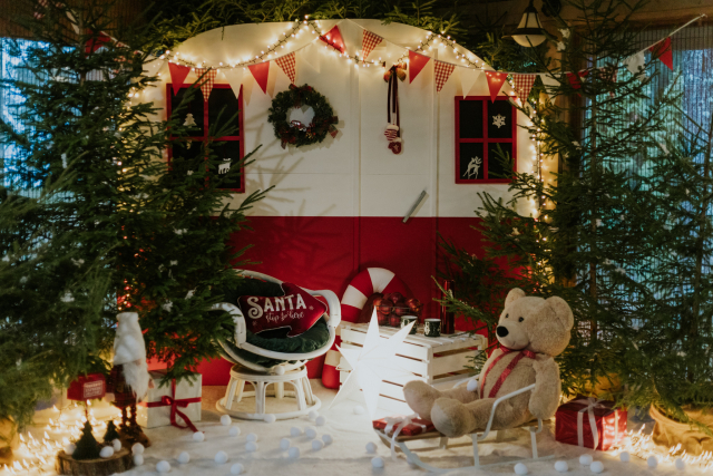 Šogad kamīnzālē radīta ziemas pasaka mežā – vieta, kur uz brīdi apstājas laiks. Pie neliela “kemperīša”, kas ieskauts kuplās eglēs, rūķos, dāvanās un pat rotaļīgās sniega pikās, izveidots fotostūris, kas ļaus ikvienam sajusties kā ziemīgā pasakā. Kamīnzāle ir piemērota arī svinībām kolektīva, ģimenes vai draugu lokā – telpa jau ir noformēta, tostarp sagatavots skaisti klāts svētku galds.
