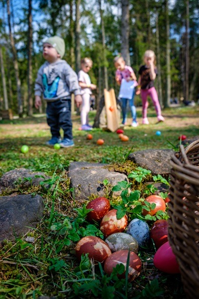 Kas gan tās par Lieldienām bez olu krāsošanas un kaulēšanās! Ja piknika grozā aizmirsies paņemt līdzi cieti vārītas, krāsotas olas, nebēdā. Rūķu sētā Rūķu māmiņa aicinās uz Lieldienu olu krāsošanas maratonu! Rūķu saime dalīsies padomos, kā, izmantojot dabas materiālus, tās nokrāsot īpaši krāšņas.