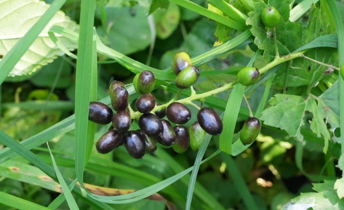 Nobriedusi un svara dēļ noliekusies vārpainās krauklenes augļkopa, iztālēm, pavirši aplūkota, zināmā mērā līdzinās tumšo vīnogu augļkopai.