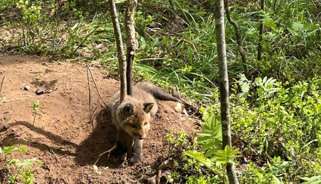 At the beginning of the summer, you could observe how the nest in the Aizkuja district is visited during the day by a couple of lesser spotted eagles, which are not nesting this year, but are decorating the nest with fresh spruce branches. At dusk, the nest is visited by two tawny owl babies that have flown out of a nearby cavity.
