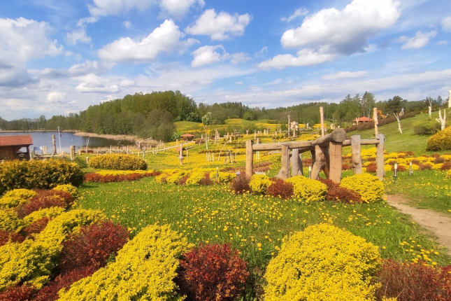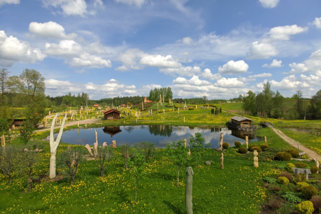 On the King Mountain that is on the other shore of Lake Egles entrepreneur Jānis Strupāns started to build a sculpture complex in 2006 which has become one of the most popular tourist attractions in Aglona region. Ēriks Deplers who is the author of the idea and the project, used to be a military pilot but now is a wood sculptor and author of several spiritual books. He thinks that everyone who visits King Mountain can get in touch with the God and the real beauty. Lake, clouds, the mountain, ancient oak benches that has been kissed by the sun in the park and the wooden sculptures creates a heart-warming atmosphere erasing all every-day challenges for a moment.